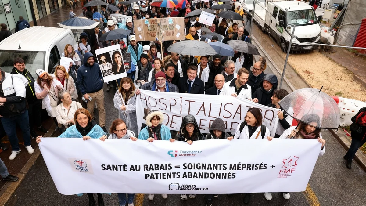 Entre 700 et 1 000 professionnels de santé ont manifesté à Nice contre le projet de budget de la Sécurité sociale 2026, craignant une dégradation de l'accès aux soins.